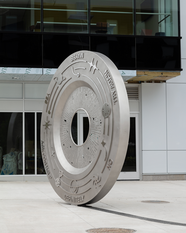 Wheel of Fortune is a positive reminder of our shared capacity to make choices big and small. Each choice we make compounds to make a life. And, of course, each day brings different choices. For students who live here or for people who frequently pass by the Quad, the artwork will change as different words resonate at different moments. Its steadfast presence, meanwhile, will become a symbol of reassurance, of home.